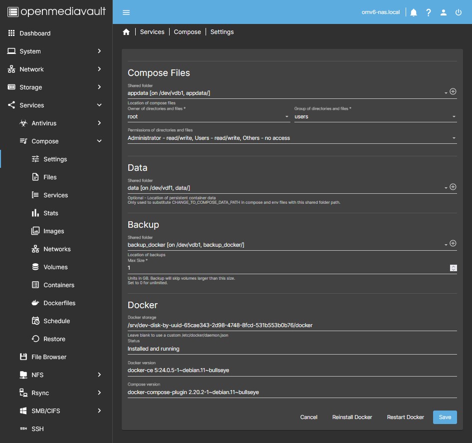 - We will use docker-compose due to its ease of use and the integration offered by the openmediavault-compose plugin in OMV.