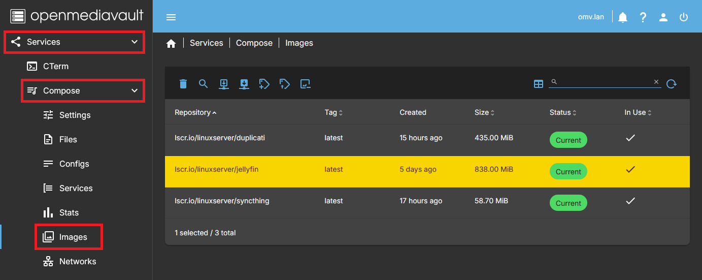 The installation and initial configuration of Docker and the openmediavault-compose plugin are covered in the document Docker in OMV 8 and will not be repeated here.