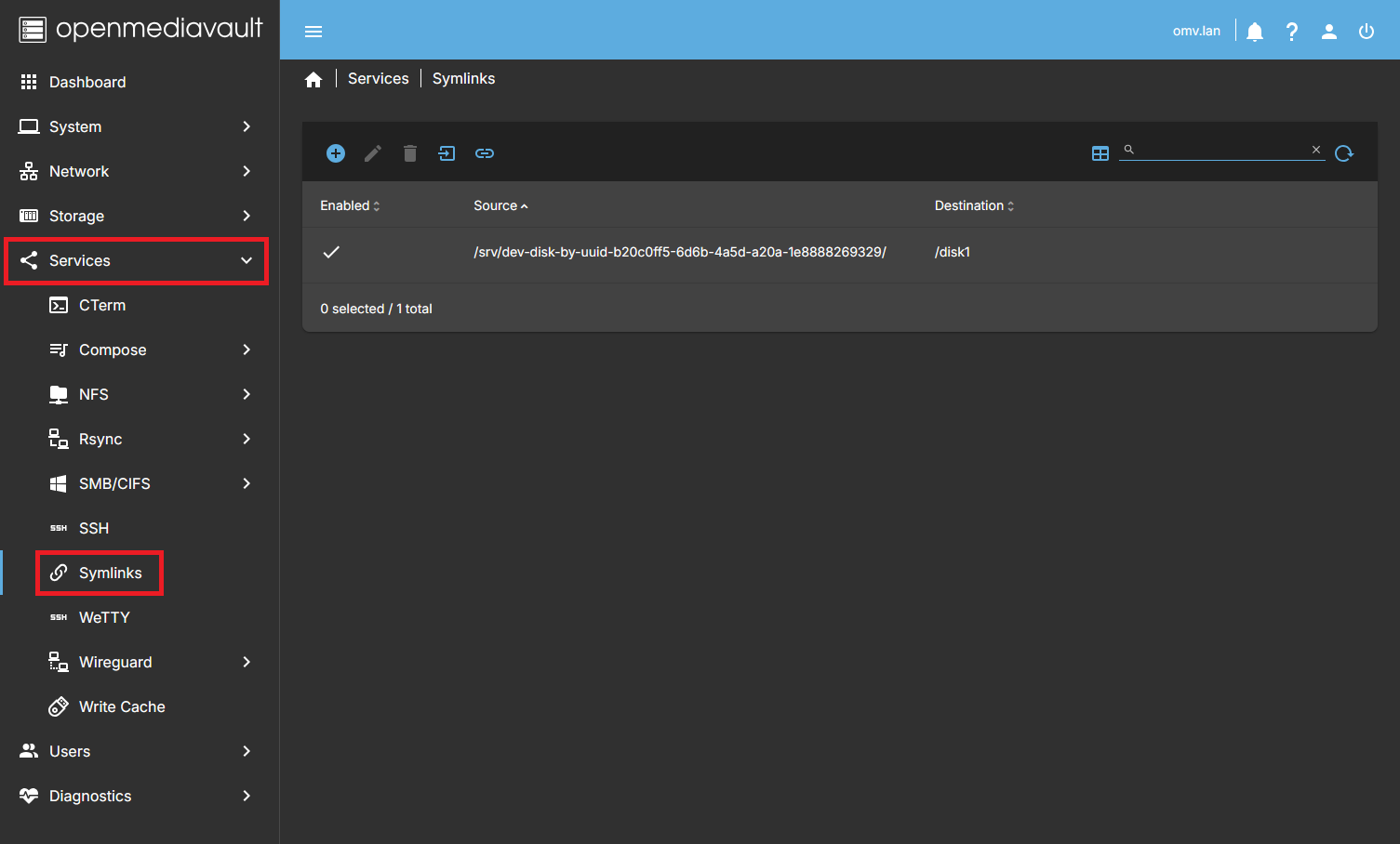 - You can import symlinks that were created manually from the CLI so they appear in the OMV GUI.